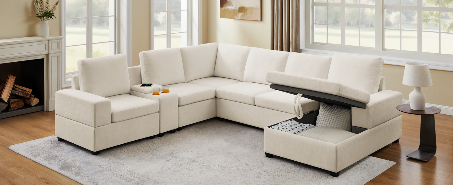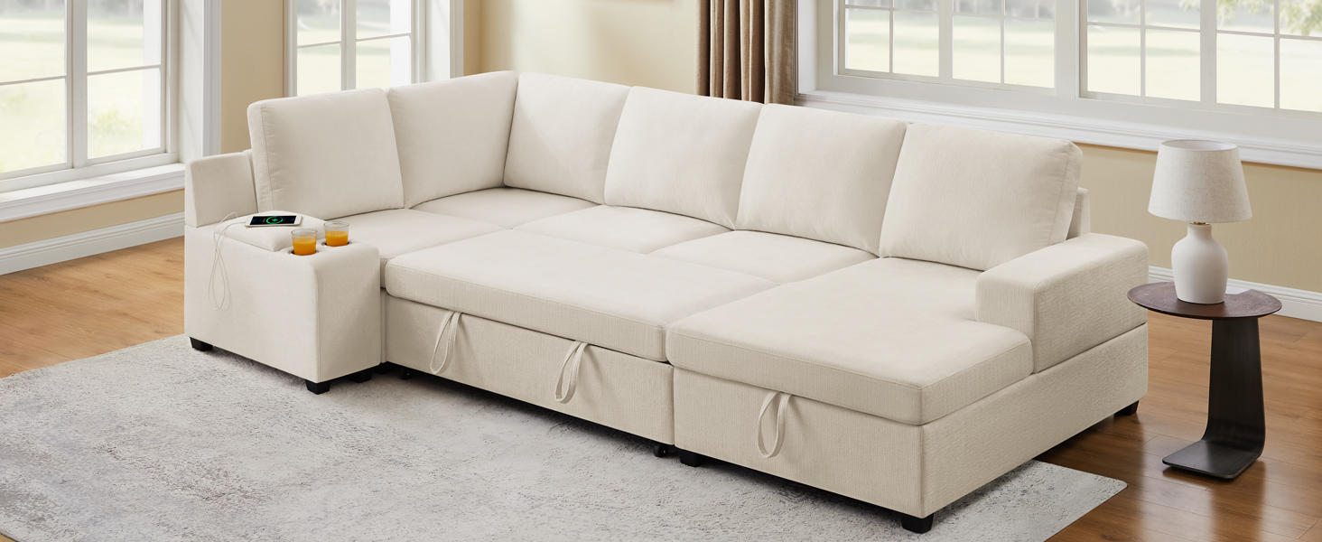 119.7" Pull Out Sofa Bed with Storage & Chaise for Living Room