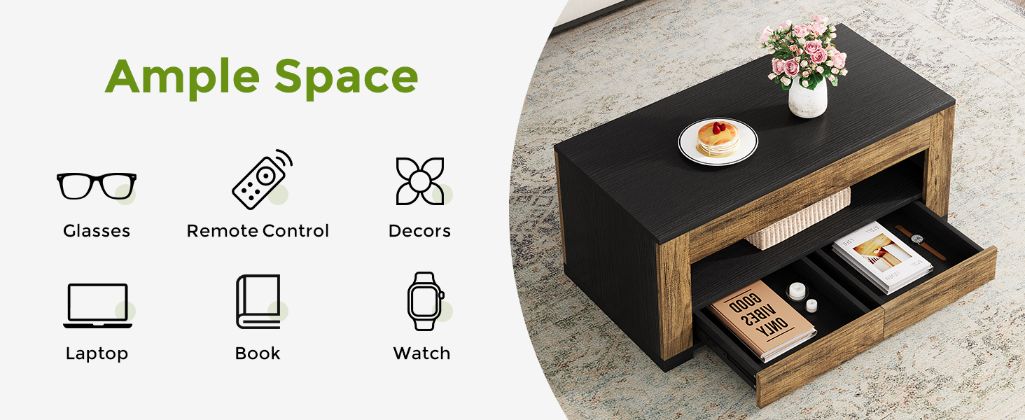 This coffee table is built to handle the demands of a busy home. With a high load-bearing capacity of up to 300 lbs and a sturdy two-tier construction, it stands firm and resilient, holding your essentials securely. The table’s robust design and quality materials make it a long-lasting addition to any room.