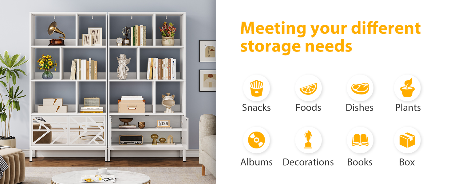 Thoughtful Design: Combining open and hidden storage, it lets you display decor or store essentials. Adjustable shelves and magnetic-spring cabinet doors ensure easy access and smooth operation.
