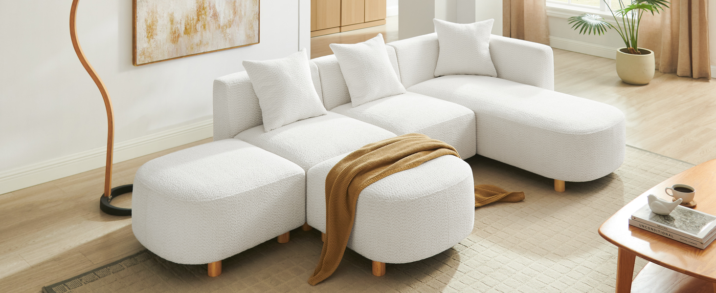 Your dream living room is just a few steps away! This modular sectional sofa arrives in clearly labeled boxes and can be assembled quickly with minimal effort. No special tools needed—so you can relax on your stunning new white couch for living room in no time