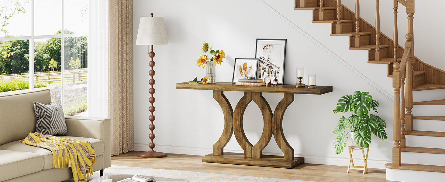 Farmhouse Console Table ,55-Inch Brown Sofa Table Behind Couch