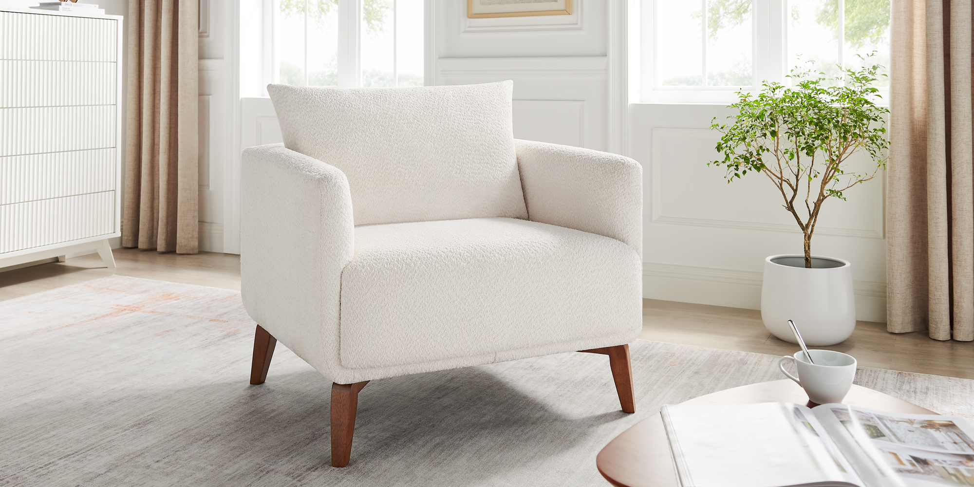Wrapped in premium boucle fabric, this comfy chair feels as soft and cozy as sitting on a cloud. The plush chair with cushion offers a “cloudy” touch that makes it the ideal for long reading sessions, movie nights, or simply relaxing after a long day