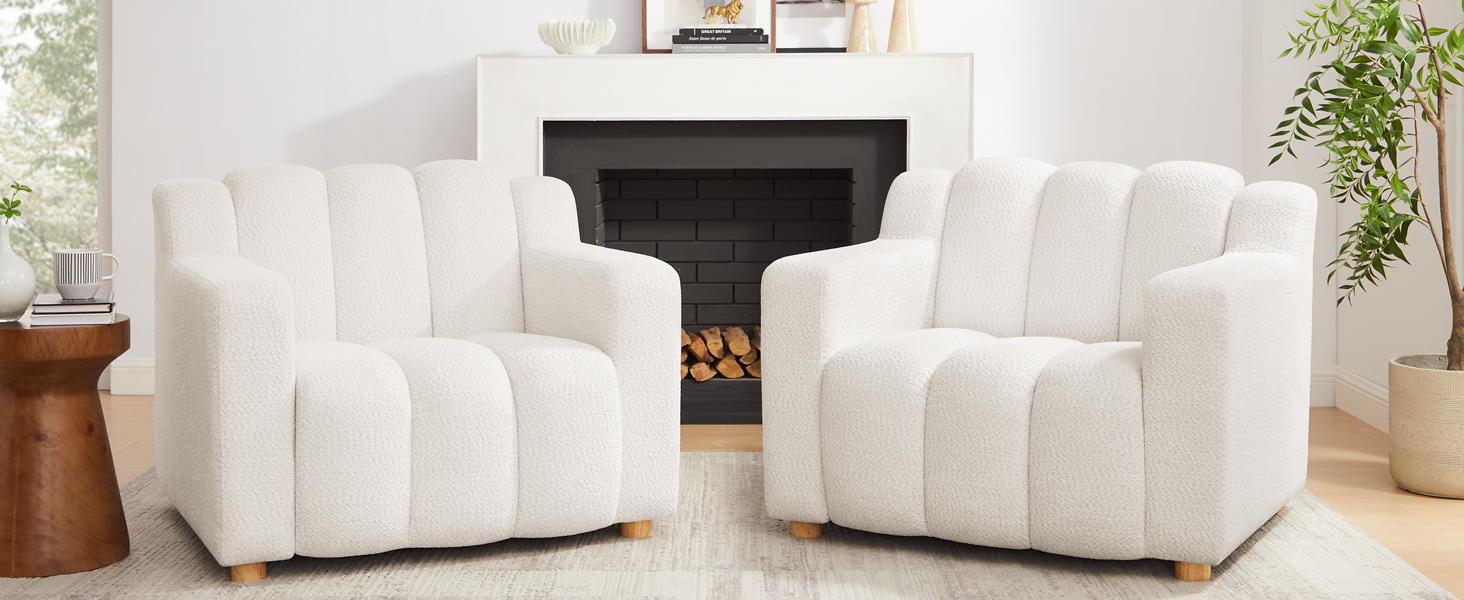 Sink into the ultimate comfort of our cloud-like boucle accent chair. The breathable, ultra-soft fabric is gentle on the skin and incredibly inviting. A perfect comfy chair for curling up with a good book, and thanks to its durable texture, it's completely pet-friendly. Your furry friends can snuggle up without worry