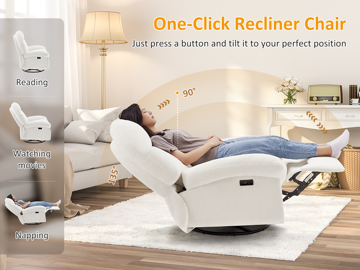 Power swivel nursery glider recliner with USB & Type C Charging, Rocking Chair for Living Room, Bedroom, and Office Power swivel nursery glider recliner with USB & Type C Charging, Rocking Chair for Living Room, Bedroom, and Office Power swivel nursery glider recliner with USB & Type C Charging, Rocking Chair for Living Room, Bedroom, and Office Power swivel nursery glider recliner with USB & Type C Charging, Rocking Chair for Living Room, Bedroom, and Office