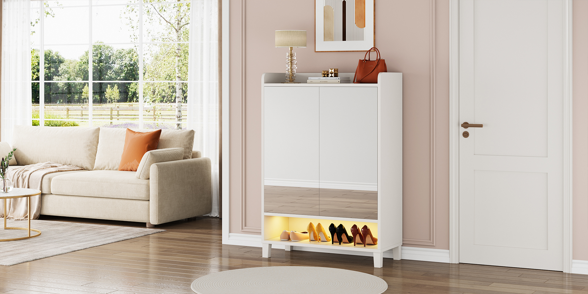 Enjoy the convenience of an automatic sensor light built into the bottom of the cabinet. The warm yellow light activates as you approach, making it easy to locate your shoes at night or in dimly lit conditions. A thoughtful design that enhances both functionality and comfort in your daily routine.