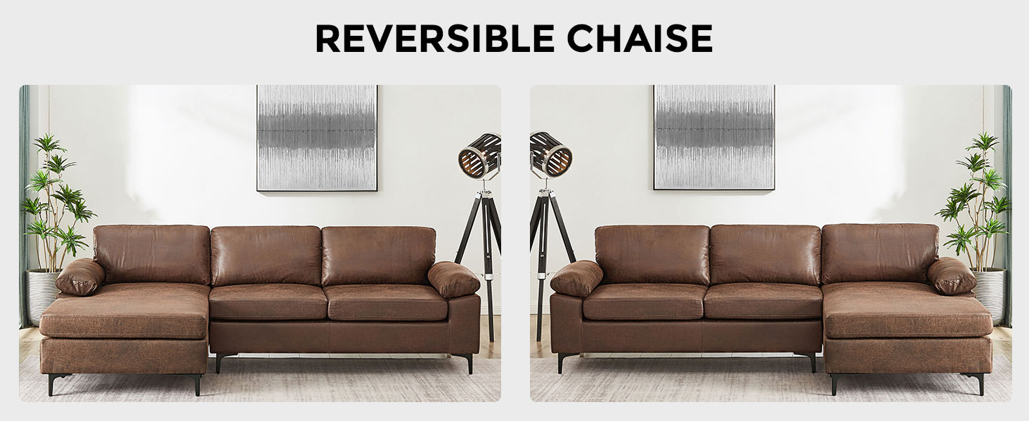 100" 4 Seater Reversible Faux Leather Sectional Sofa with Chaise