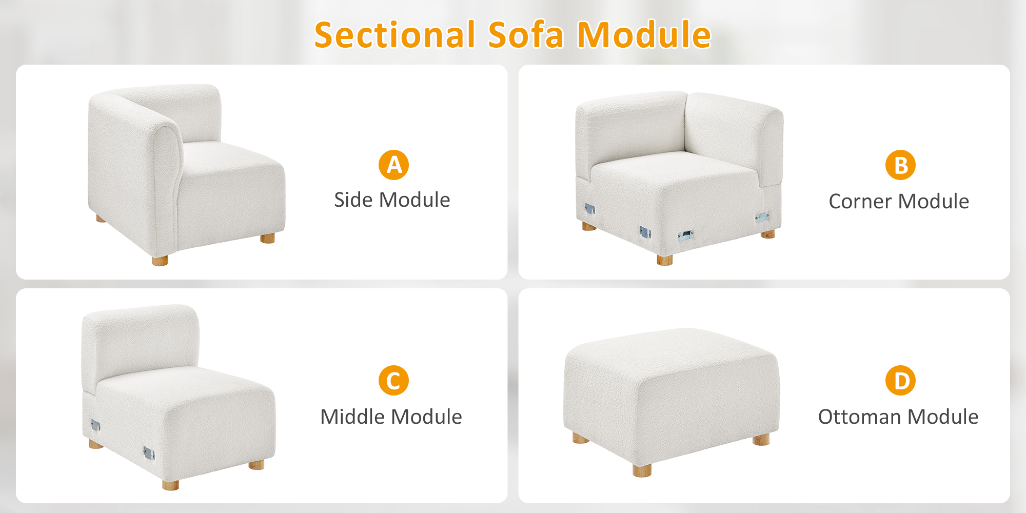 32''W Upholstered Ottoman for L/U/V Shaped Boucle Modular Sofa