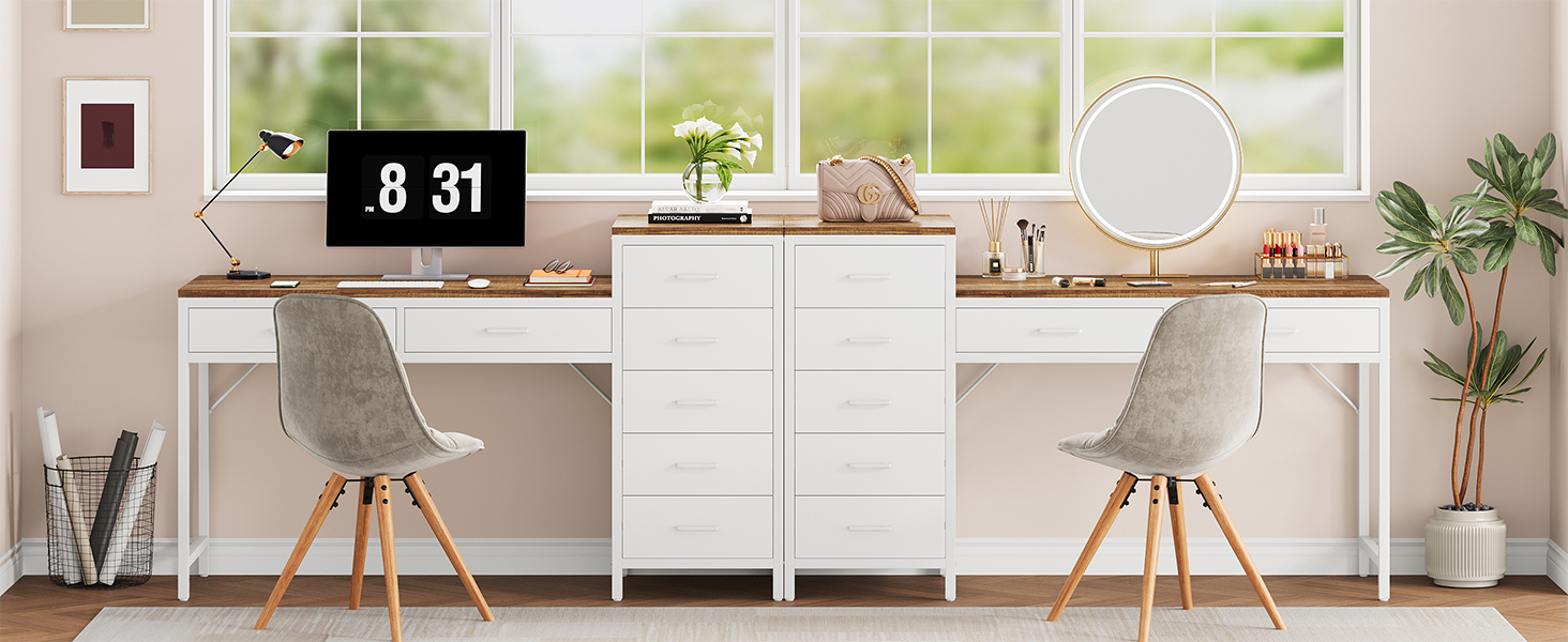 This 55-inch computer desk offers ample workspace for all your needs—writing, drawing, or computer tasks. Featuring 2 large and 5 small drawers, it provides generous storage for stationery, files, and office supplies, helping you maintain a tidy and efficient workspace.