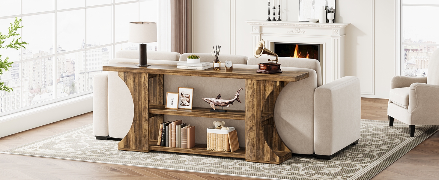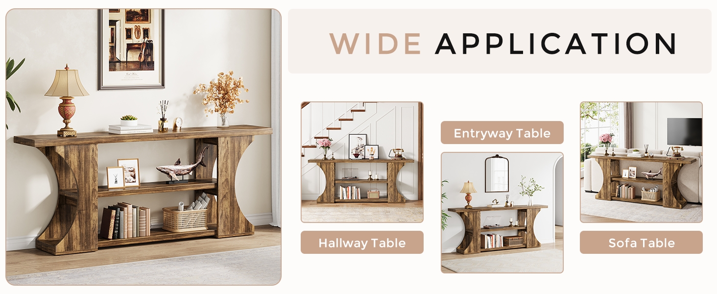 70.87" Sofa Console Table with 3-Tier Storage Space for Living Room