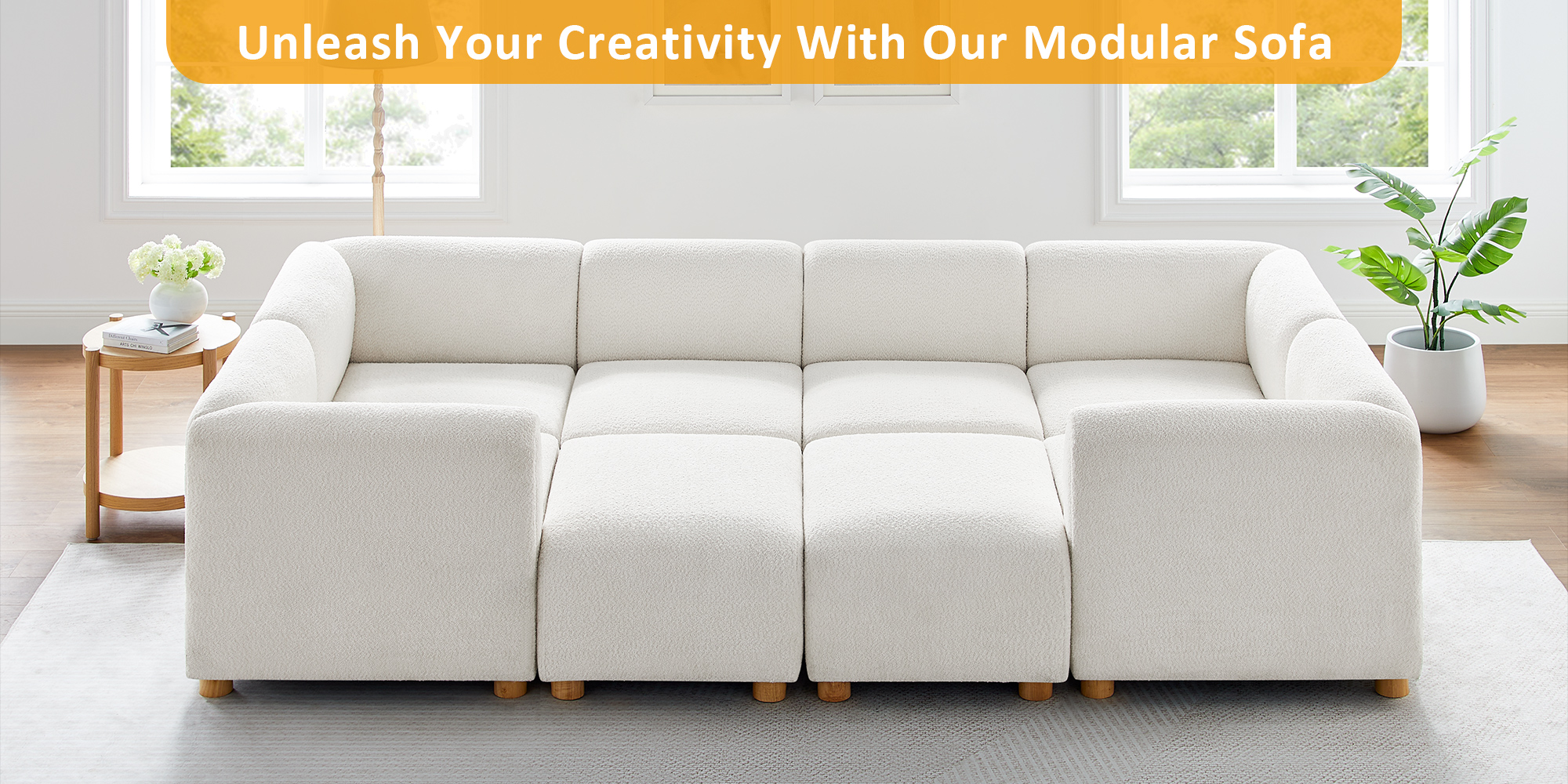 90''-117'' L/U/V Shaped 5/6/8 Seat Boucle Modular Sofa with Ottomans