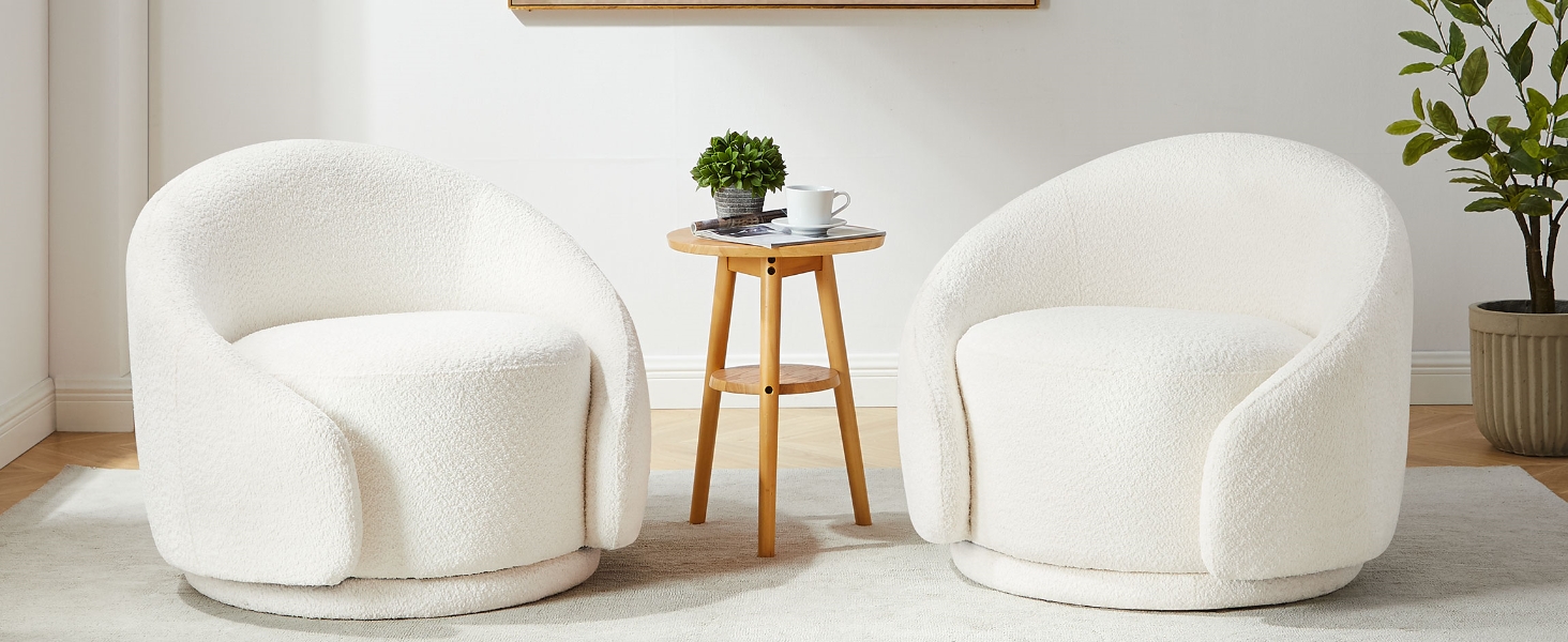 Available in Boucle and Velvet, the innovative and stylish exterior design makes this chair a great decoration for both large living rooms and small spaces.